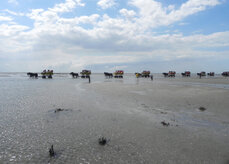 Ausflug nach Cuxhaven im Juni 2011 mit Übernachtung im "Hus achtern Diek" auf der Insel Neuwerk. Ich hatte mich für die Fußwanderung entschieden, andere bevorzugten die Pferdekutsche. Es war schon eine herausfordernde Aktion, dieser Marsch. Und auf jeden Fall stand das Fußwaschen auf der Liste. Die Übernachtung auf dem Dachboden der Scheune? Wir hatten vorher extra eines der wenigen Zimmer gebucht. Der Rückweg am nächsten Tag war dann auch wieder "Pflicht" für mich.