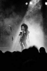 Anfang der 80'er Jahre. Bettina Wegner war in der BRD bekannt und hatte einen Auftritt im Rahmen einer Veranstaltung in Hannover. Ihr Lied "Sind so kleine Hände" faszinierte damals das Publikum und mich berührte diese schüchterne und doch auch die gleichzeitig so starke Frau aus der DDR. Ich schickte ihr die entstandenen Bilder und wir hatten auch über längere Zeit brieflichen Kontakt und das eine oder andere Treffen bei ihren weiteren Liederabenden. Es war das erste Mal, dass mich das Fotografieren auch innerlich so sehr berührt hatte.