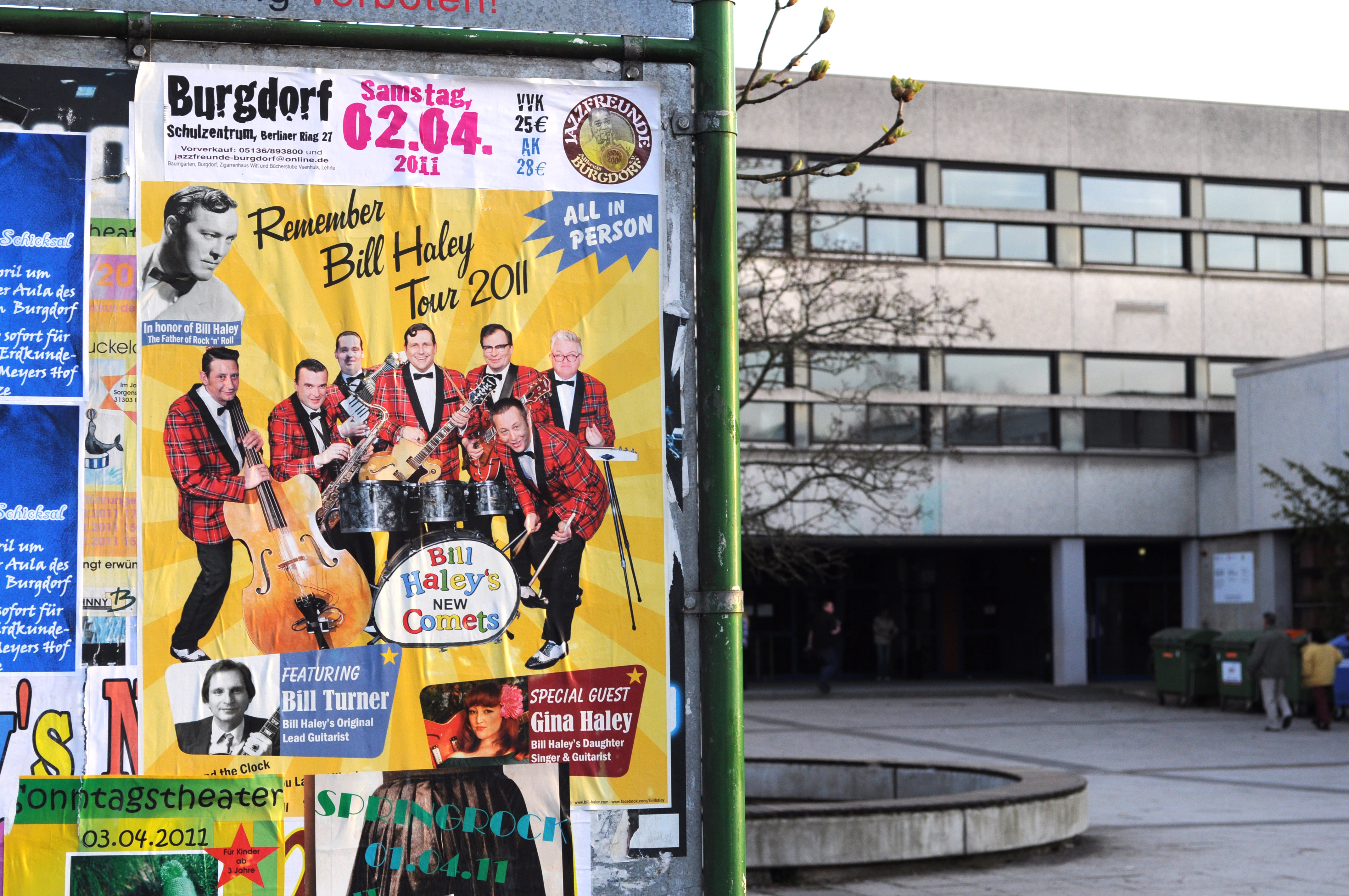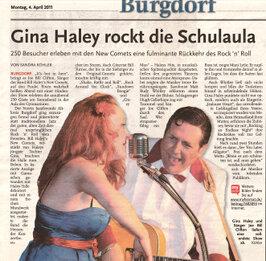 Wer hätte das gedacht, Bill Haley tritt in Burgdorf auf. Vor der Festhalle waren schon die prächtigen Cadillac aus der Rock&Roll Zeit zu sehen. Bill Haley selbst war schon vor 30 Jahren verstorben, aber er schaute bestimmt von oben zu. "Rock Around the Clock" war die meistverkaufte Rock-Single in der Geschichte dieses Genres und einige der "alten" Bandmitglieder präsentierten die Songs der Band mit dem bekannten Sound wieder auf der Bühne für das begeisterte Publikum. Mit dabei war auch Gina Haley, Tochter von Bill Haley und der Gitarrist Bill Turner. Für meine neue Digital-Kamera Nikon D700 war es der erste große Auftritt.