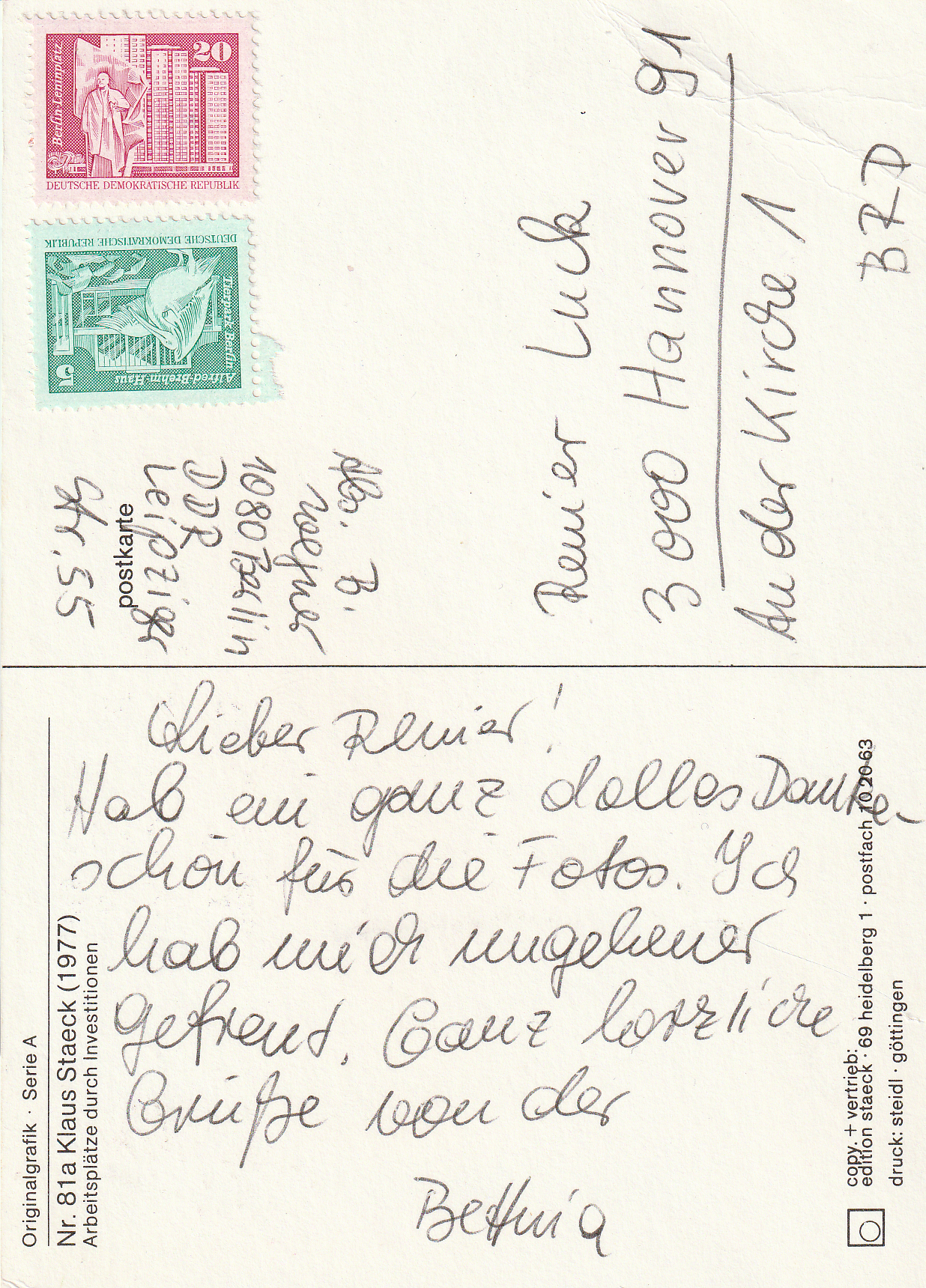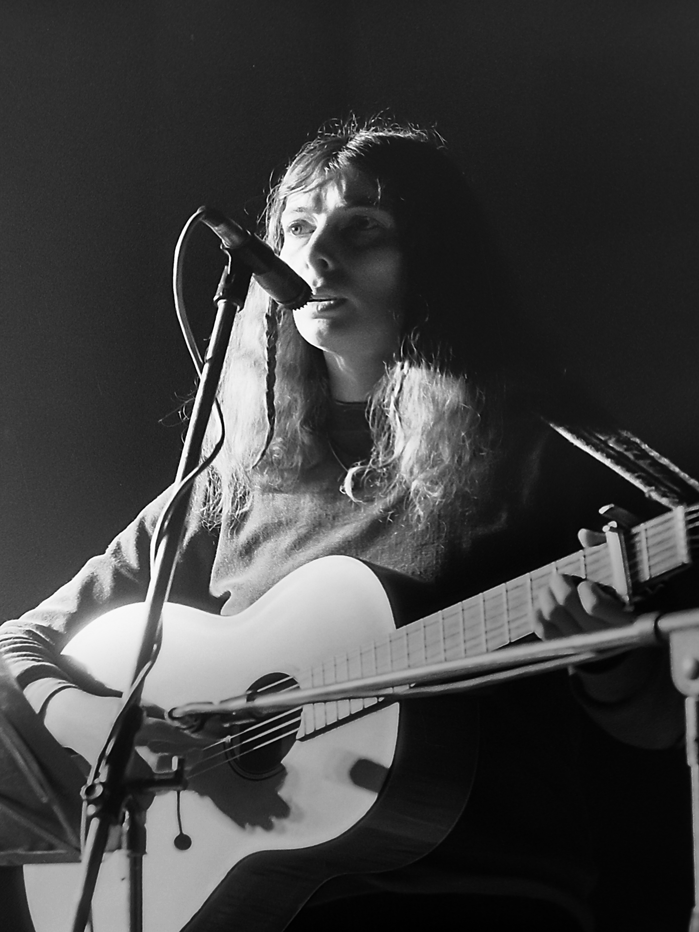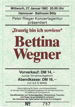Anfang der 80'er Jahre. Bettina Wegner war in der BRD bekannt und hatte einen Auftritt im Rahmen einer Veranstaltung in Hannover. Ihr Lied "Sind so kleine Hände" faszinierte damals das Publikum und mich berührte diese schüchterne und doch auch die gleichzeitig so starke Frau aus der DDR. Ich schickte ihr die entstandenen Bilder und wir hatten auch über längere Zeit brieflichen Kontakt und das eine oder andere Treffen bei ihren weiteren Liederabenden. Es war das erste Mal, dass mich das Fotografieren auch innerlich so sehr berührt hatte.