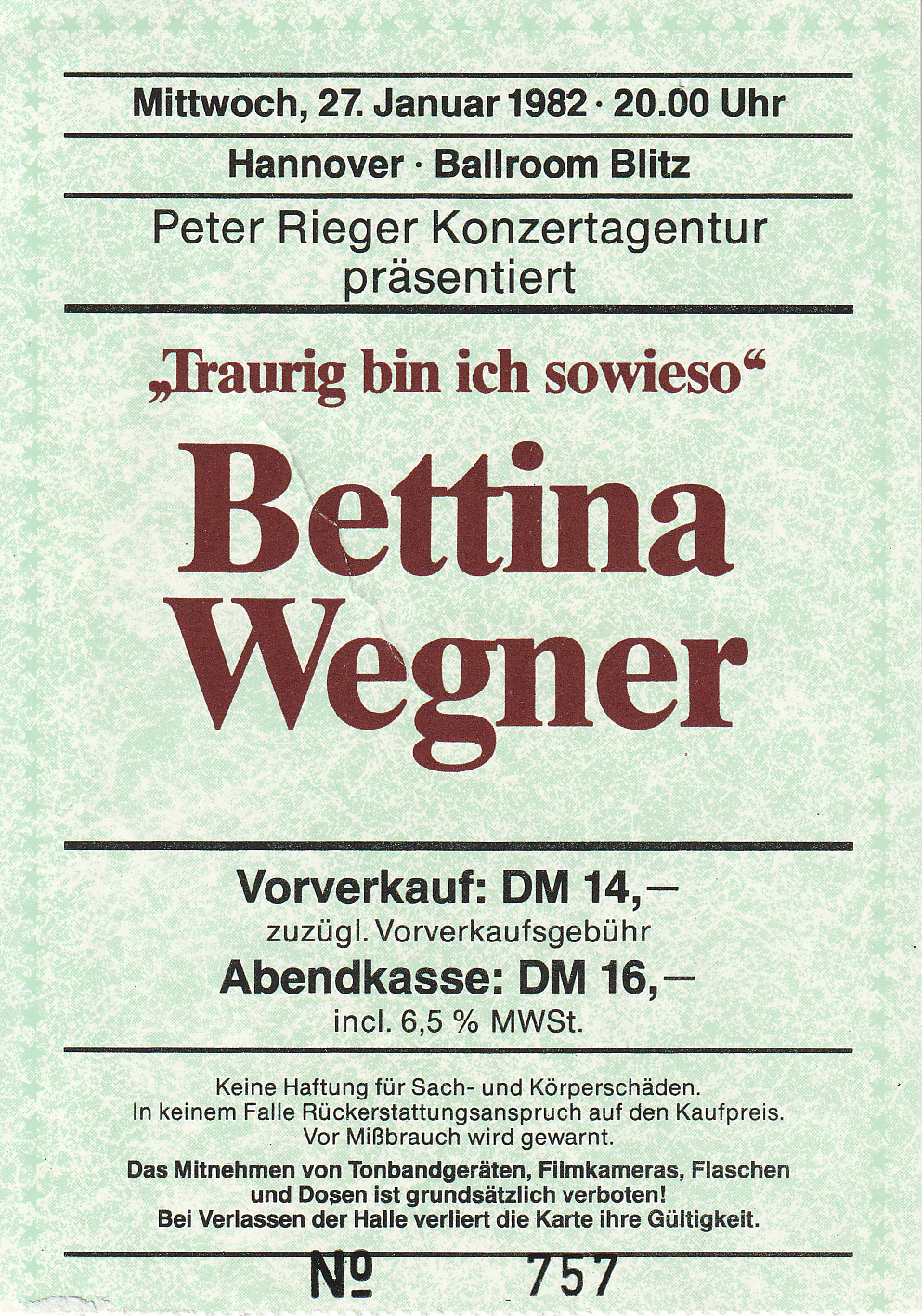Konzert in Hannover im Kuppelsaal im Oktober 1979